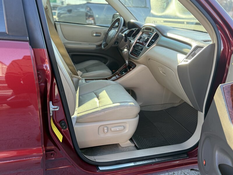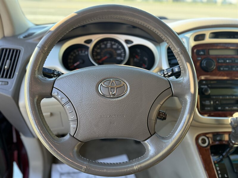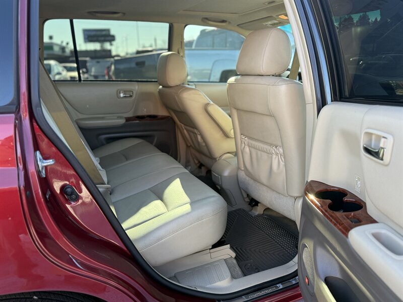 2005 Toyota Highlander LIMITED AWD — Salsa Red Pearl exterior, Black leather interior. This Highlander is in excellent overall condition, rust free with a clean title and a clean CARFAX report. It is powered by a smooth, naturally aspirated 3.0L V6 (DOHC, 24-valve) paired to an automatic transmission and all-wheel drive, delivering balanced performance for daily driving with EPA-rated fuel economy of approximately 19 MPG city and 24 MPG highway.