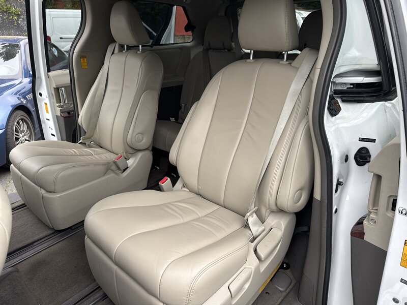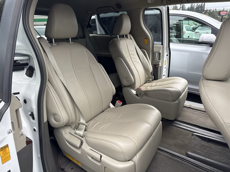 This well-maintained 2014 Toyota Sienna XLE AWD is a roomy, reliable 7-passenger minivan finished in Super White with a Bisque leather interior. Powered by Toyota’s 3.5L V6 (266 hp, 245 lb-ft) mated to a smooth 6-speed automatic transmission and full-time AWD, this Sienna delivers confident all-weather traction and comfortable highway cruising. With under 94,000 miles (averaging less than 8,000 miles per year) and EPA ratings of approximately 18 MPG city / 23 MPG highway, it’s an economical choice for families who want space without sacrificing efficiency. The vehicle has a clean CARFAX and a single previous owner and presents in excellent overall condition.