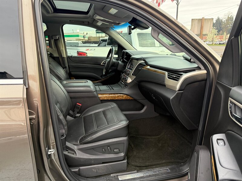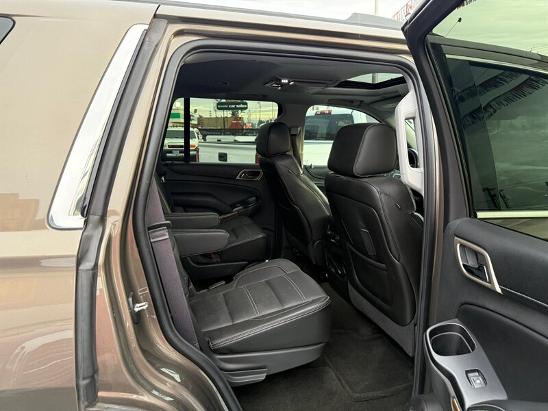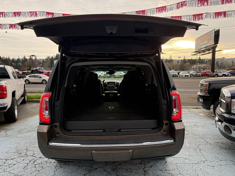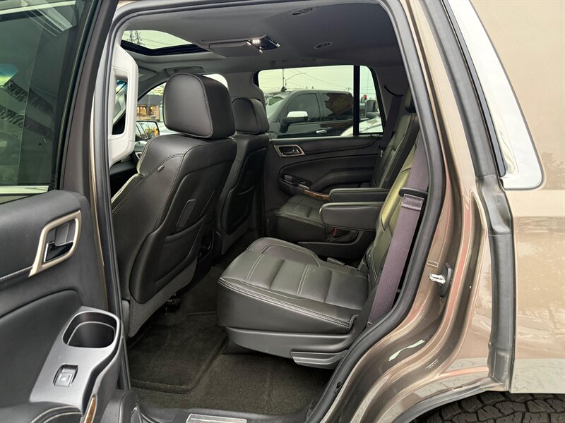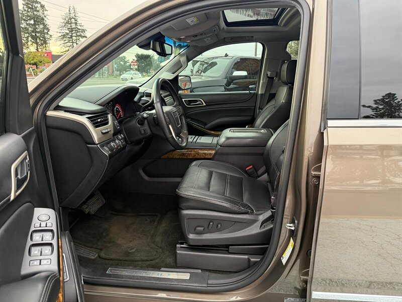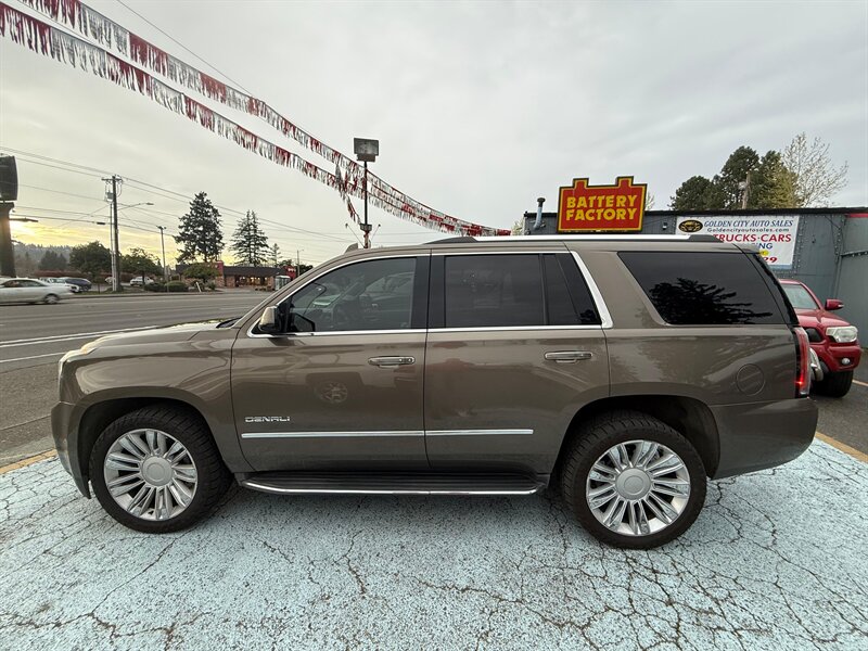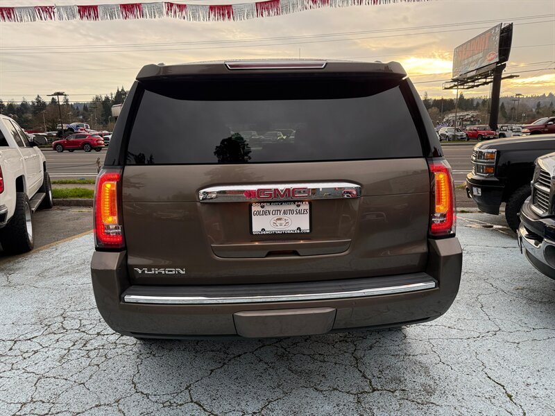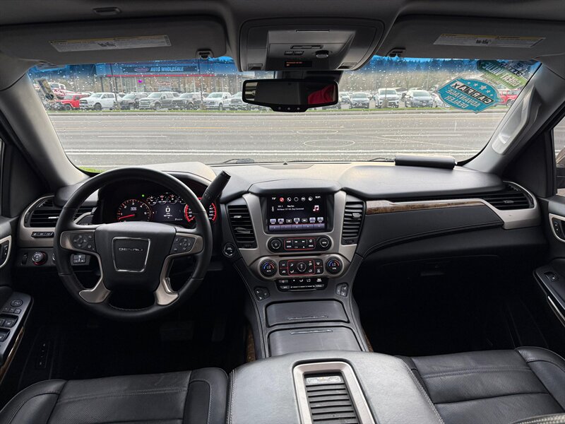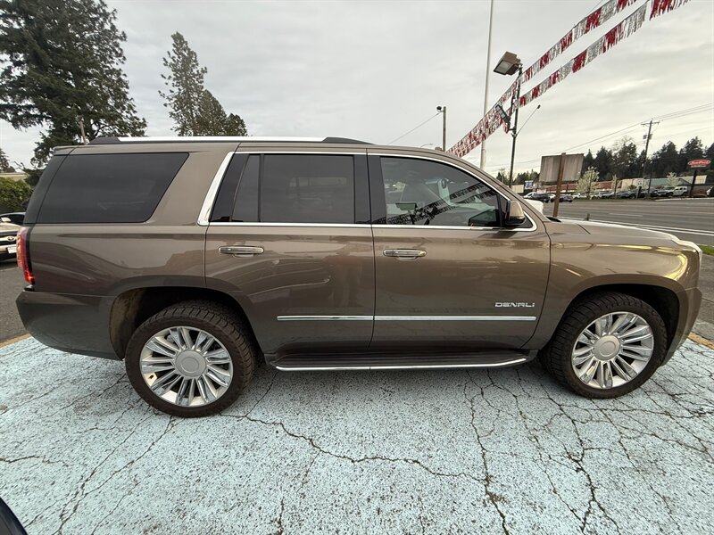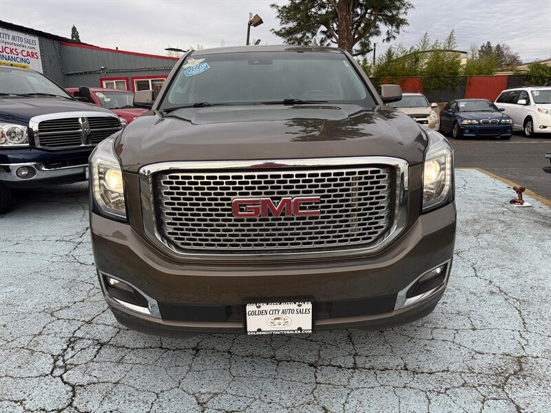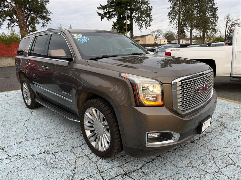 2016 GMC Yukon Denali 4WD — Bronze Alloy Metallic exterior with Jet Black leather interior. This Yukon is a rust-free, clean-title example in excellent overall condition, showing just under 99,000 miles (averaging less than 9,000 miles per year). Powered by GM’s proven EcoTec3 6.2L V8 producing 420 hp and 460 lb-ft of torque, it delivers strong towing and passing power while offering an EPA estimate of 15 MPG city and 21 MPG highway. Easy financing is available.