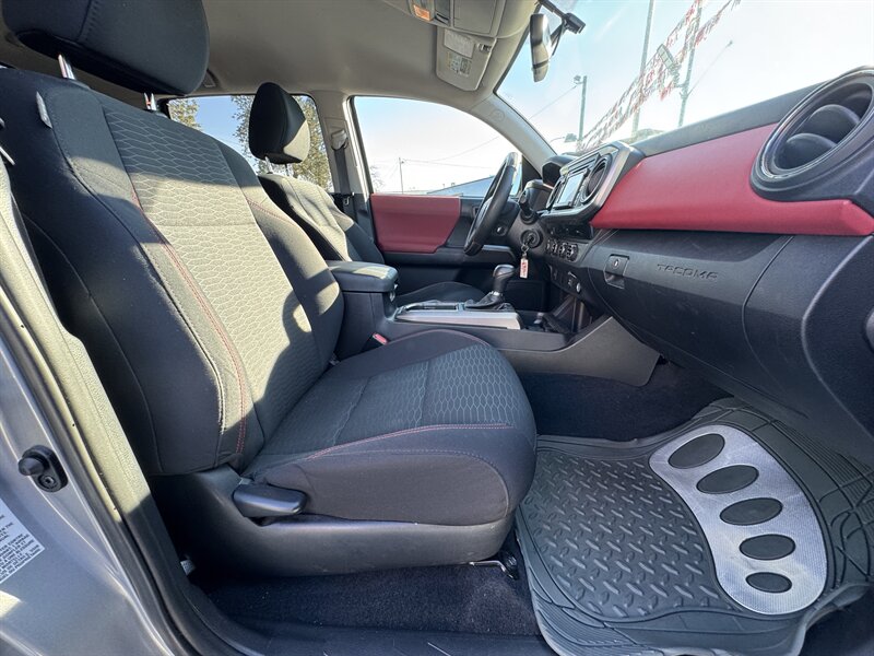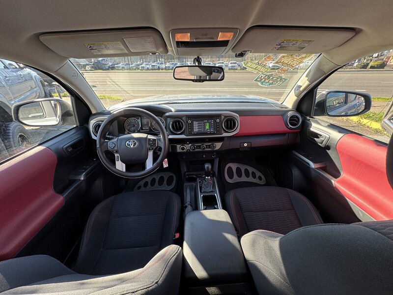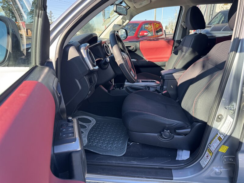 This clean, well-maintained 2016 Toyota Tacoma SR5 comes in Silver Sky Metallic with a striking Black/Red interior and a full 6-foot bed. Powered by Toyota’s reliable 3.5L V6 producing 278 hp and 265 lb-ft of torque, this Tacoma is paired with a smooth-shifting 6-speed automatic transmission and a part-time 4WD system with low-range gearing for confident performance on- and off-road. Excellent overall condition and low use — under 65,000 miles, averaging less than 6,000 miles per year — make this an exceptional example of a practical, dependable midsize pickup. EPA-rated fuel economy is approximately 19 MPG city and 24 MPG highway.